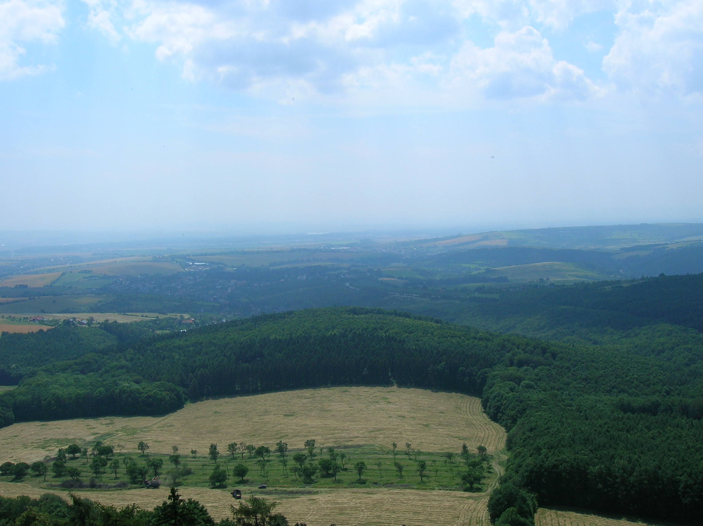Last, we climbed the tower and saw astounding views of the south and east Moravian countryside. I could also see the church where the family tomb of the Petřvalds and Berchtolds was located, but it was not nearby, and we did not go there. We descended many steps and came to the locked door. For a moment I was disoriented and lost sight of the guide. Then he appeared and opened the door with one of his many large keys. We all filed out, into the sunshine. When I turned around to thank the guide, he had disappeared.