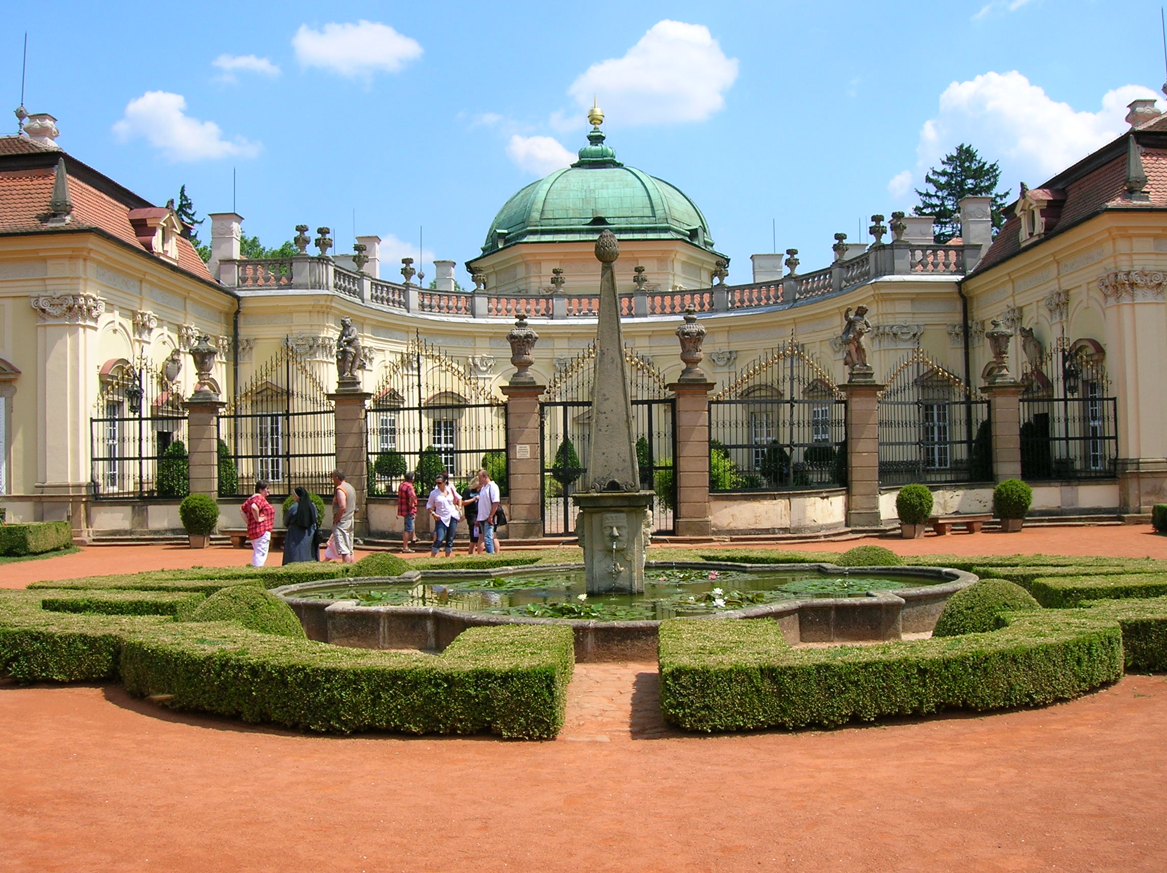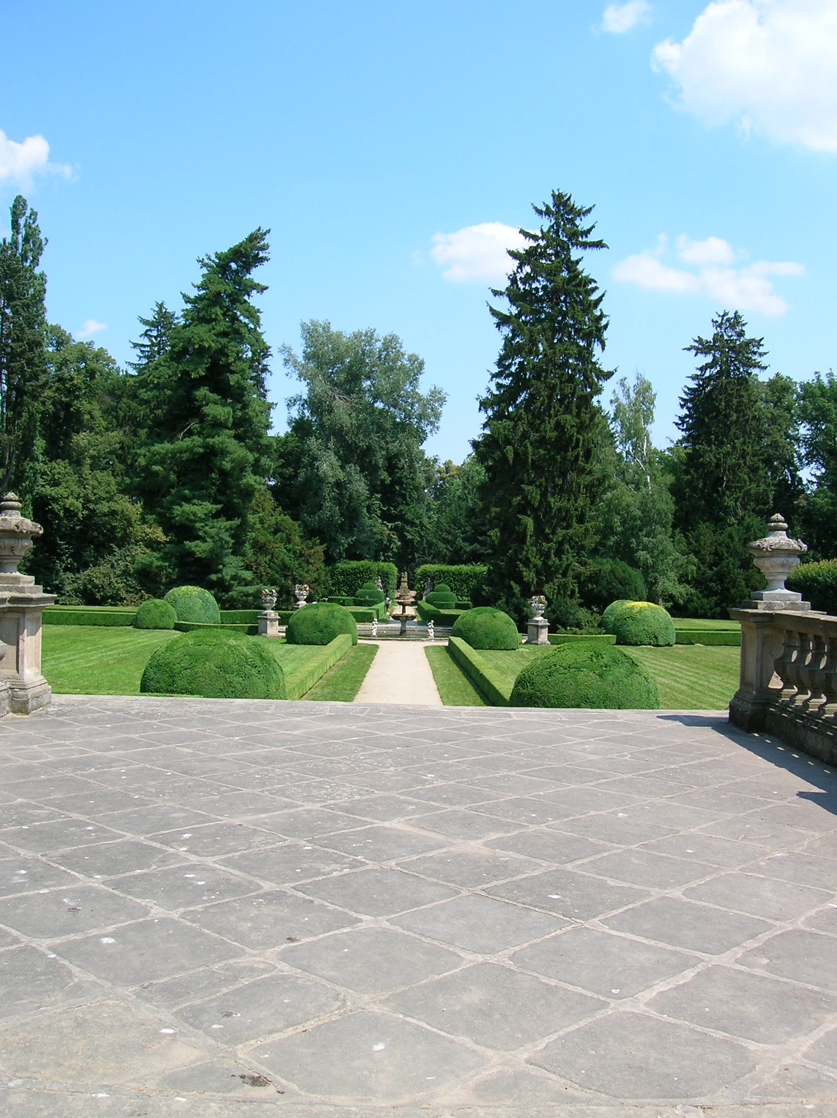 In the library that housed Frantisek Palacký’s The History of the Czech Nation in Bohemia and Moravia as well as English, German and French books, I noticed a painting of Buchlov Castle above elaborate gold frames of portraits. I would visit Gothic Buchlov after wandering through the garden here. I knew it would be a totally different experience than the tour of this Baroque chateau.