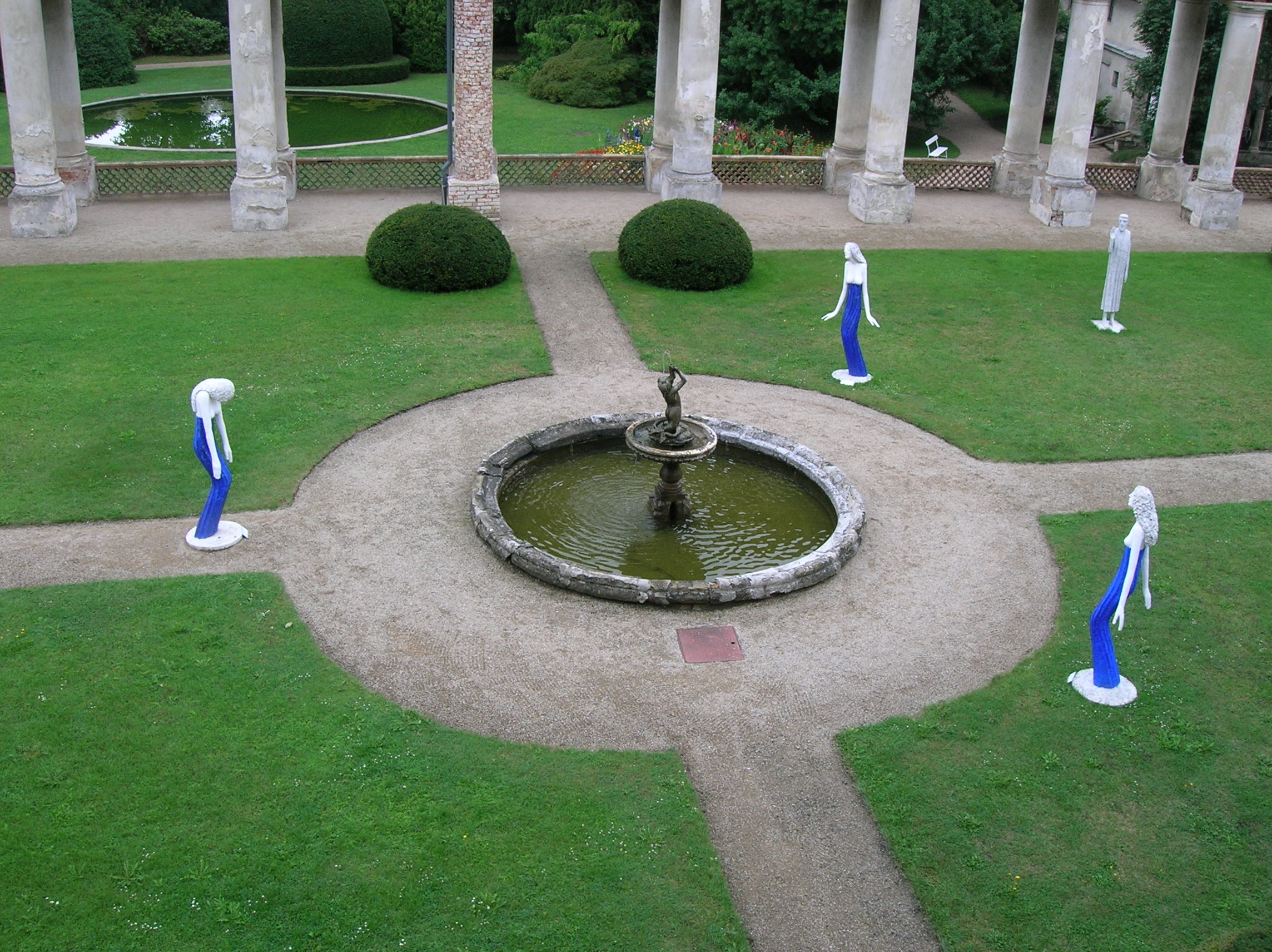 When I arrived at Manětín, I was bewitched by the Baroque statues and a sculptural grouping of the Holy Trinity in front of the main square. A road led down to the Baroque chateau itself, situated behind the statues. At the small white church next to the chateau a group of six or seven musicians were playing funereal music on trumpets. People dressed in black walked solemnly into the church.