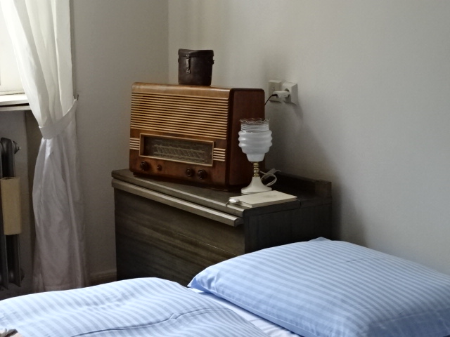 The next room was totally different, seemingly from another world. This Writer’s Room was decorated the way the room would have looked when the chateau belonged to the Writers’ Union, from the 1950s to the 1990s. The space featured a modern bed, a typewriter, a record player and a modern bathroom with two tubs. The corridor in the chateau was home to intriguing, 18th century pictures of Prague and Vienna. I spotted graphics of Schönbrunn Palace and its surroundings plus a forest with a church and a pond. In the section focusing on Prague I recognized Old Town Square with a plague column in the center and Týn Church’s spires in the background.
