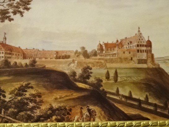 The Gobelin tapestry room charmed me with its tapestry upholstery on the furniture. I noted the armrests portraying scenes from Italian commedia dell’ arte performances. I especially admired the semi-precious stones in the 18th century jewel chest made of black ebony. In a portrait Marie Isabella Mannsfeld wore an attractive pink dress and had her hair up in a bob. Vases with Oriental motifs were also enticing.