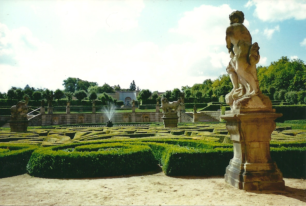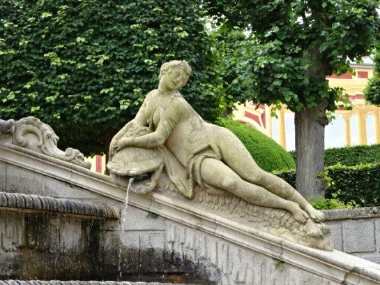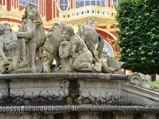Next I walked into the bewitching French park of nearly two hectares. It was one of my favorites. Founded during the 1770s when the chateau got a Baroque makeover, the French park now boasts of Rococo style. Five terraces, an orangery and a fountain with a Baroque sculptural grouping of horses created by Platzer around 1760 were just a few of the pluses. I also viewed allegorical statues of the seasons. I spotted Poseidon with a crown and Nares with an oar and ocean wreath, too. In the orangery I took note of the four statues of figures from mythology, including Apollo and Aphrodite. The English park was much larger, spanning 30 hectares with a pond and stream. Three artificial caves were located here as well.