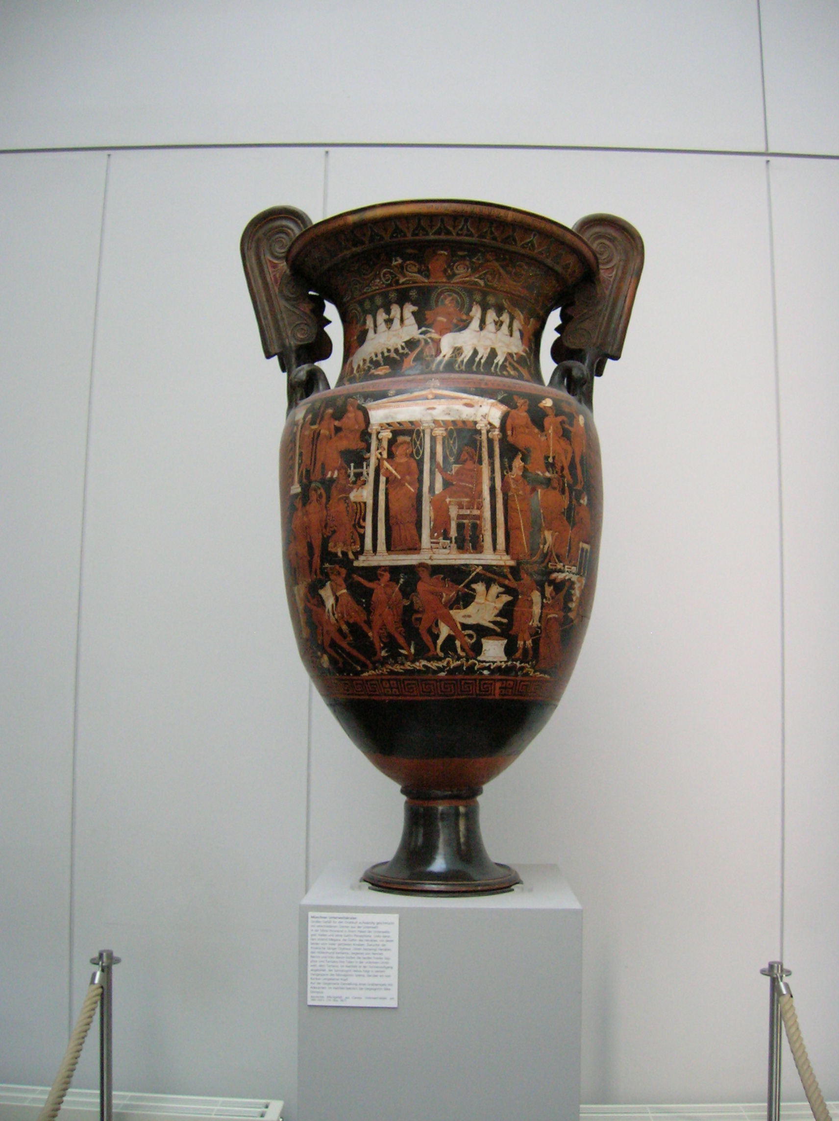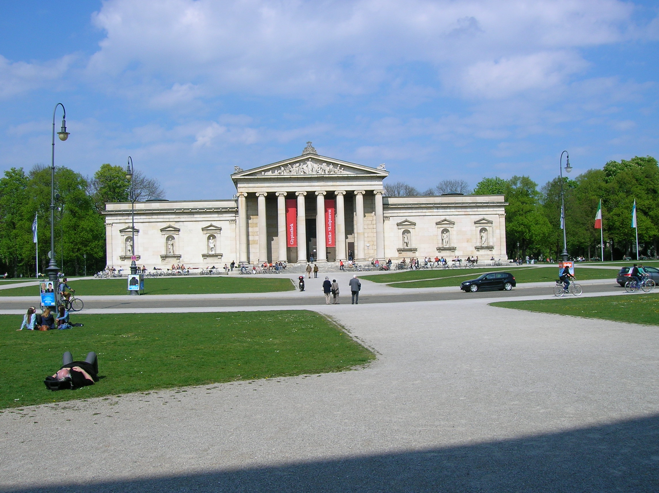 In April of 2014 I visited Munich’s Museum of Antiquities (Antikensammlungen) with its majestic façade of Corinthian Columns and the proud figure of Bavaria protecting the artistic creations. I was entranced with the diversity of objects. I looked in awe at Greek vases, bronze statuettes, jewelry, gems, sculpture, terracotta figures, ceramics and gold work as well as artifacts made of metal and glass. The time periods covered ranged from the Cycladic Culture of the Aegean region from the 3rd century BC to the Late Antiquity era from the 5th century AD. I was especially bewitched by the sculpture and Greek vases, but each object had its own exciting story to tell.
