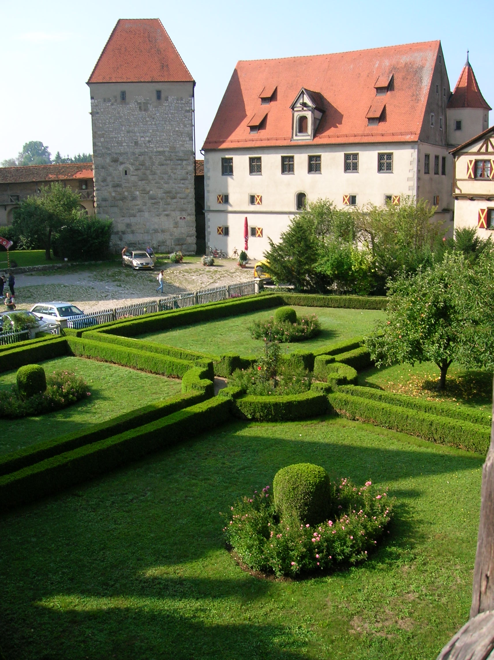 Standing on the grounds, you can feel its history. Death penalties were carried out here, and bloody battles were fought here. The Oettingen Princes owned the castle for some 700 years. The Prince’s Building even goes back to the first half of the 10th century, where the archives are now located. The two towers were first mentioned in writing during 1150 but are actually much older, dating from 600 or 700 AD. The portcullis was built in 1752. Nailed behind it is the skull of a wolf, the last wolf ever shot in the region. The granary served judicial purposes from 1806 to 1852.