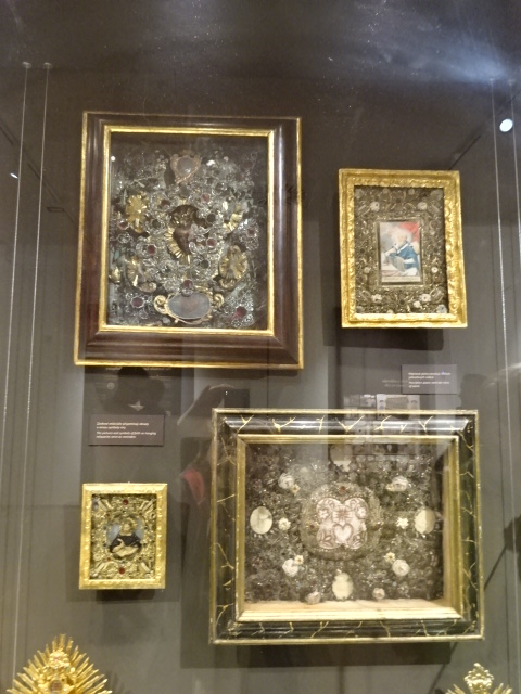 The next room dealt with the restoration process. In display cases I saw tools and utensils used to fix the reliquary, such as chasers, a metal chiseller and engravers. The guide also mentioned that the statues on the exterior of the reliquary were made of silver tin and took 11 years to restore. Imagine that! Eleven years! When the criminologists found the treasure, it was damaged. The metal pieces were corroded, and parts of the figures and reliefs were no longer attached to the relic. Due to issues relating to property rights, restoration did not begin until mid-1993.