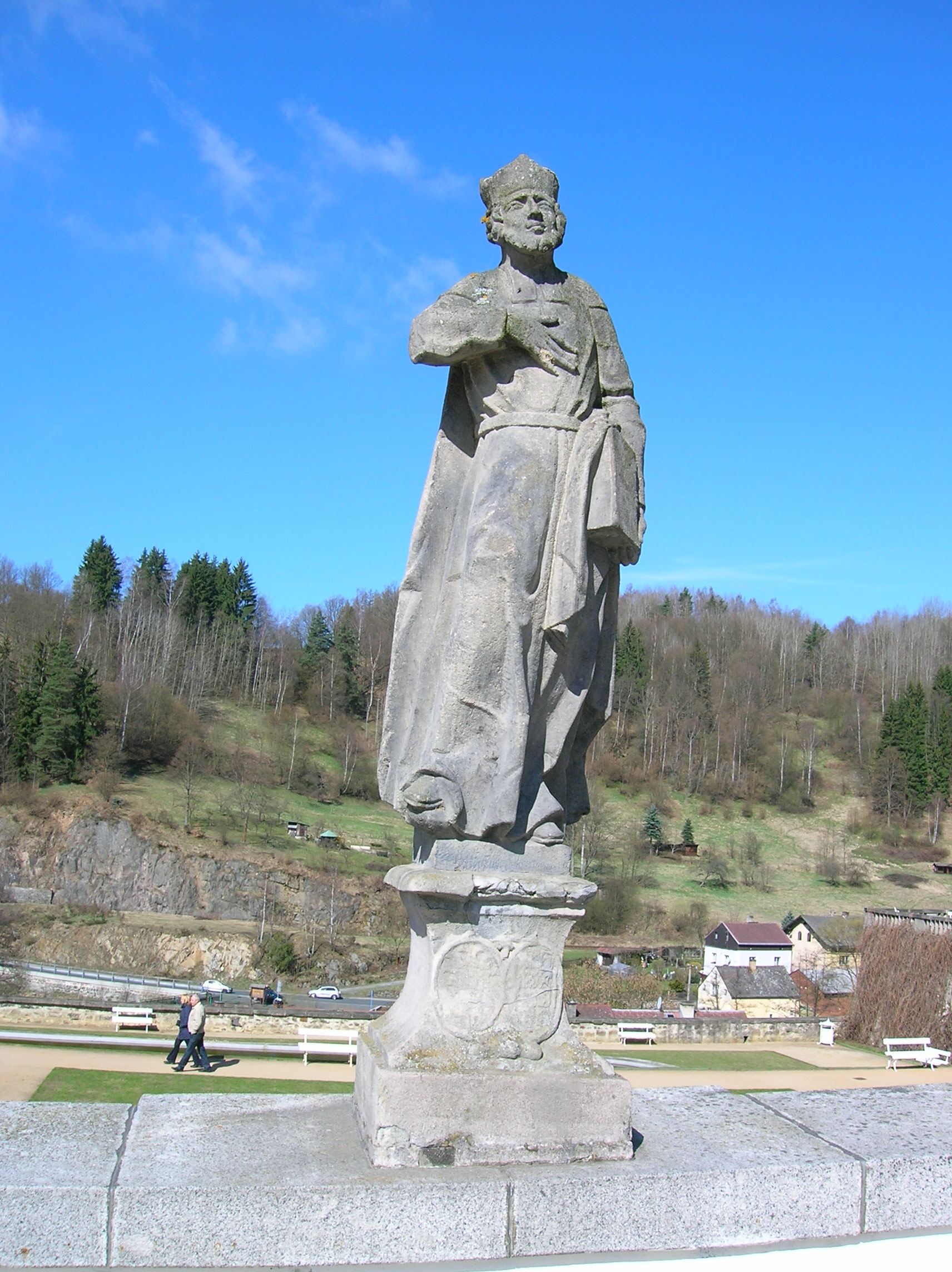 First, I crossed a small bridge decorated with the statues of John Nepomuk and the Jesuitical clergyman Jan de Gotto, both of which dated from 1753. I reached the front gate, framed in a 16th century Renaissance portal. Before going upstairs to the rooms dealing with the holy relic, we stood in a hallway decorated with portraits of soldiers riding horses off to battle. I noticed the plume on a soldier’s helmet and the castle in the lower left-hand side background of that portrait. The castle seemed so small and powerless against the mammoth soldier seated on a horse that seemed almost to bolt out of the canvas. I also was impressed by the elaborate saddle that the artist had rendered.
