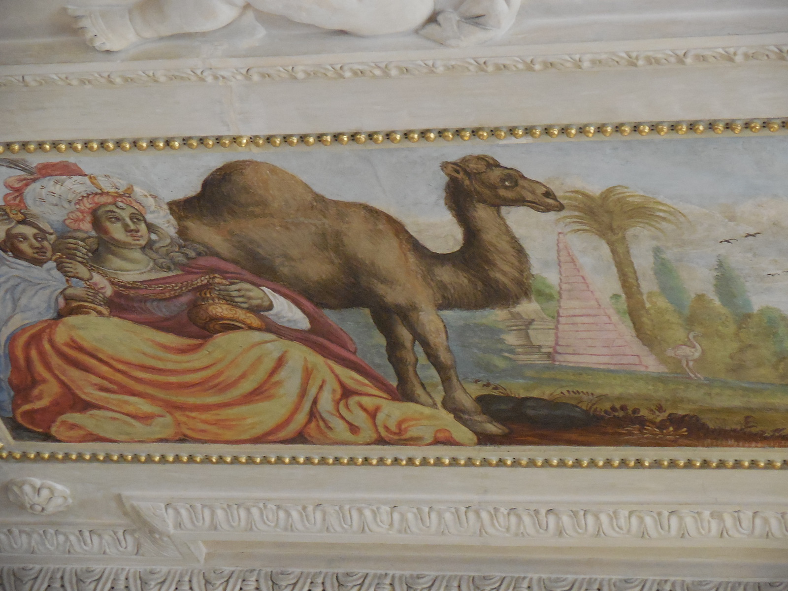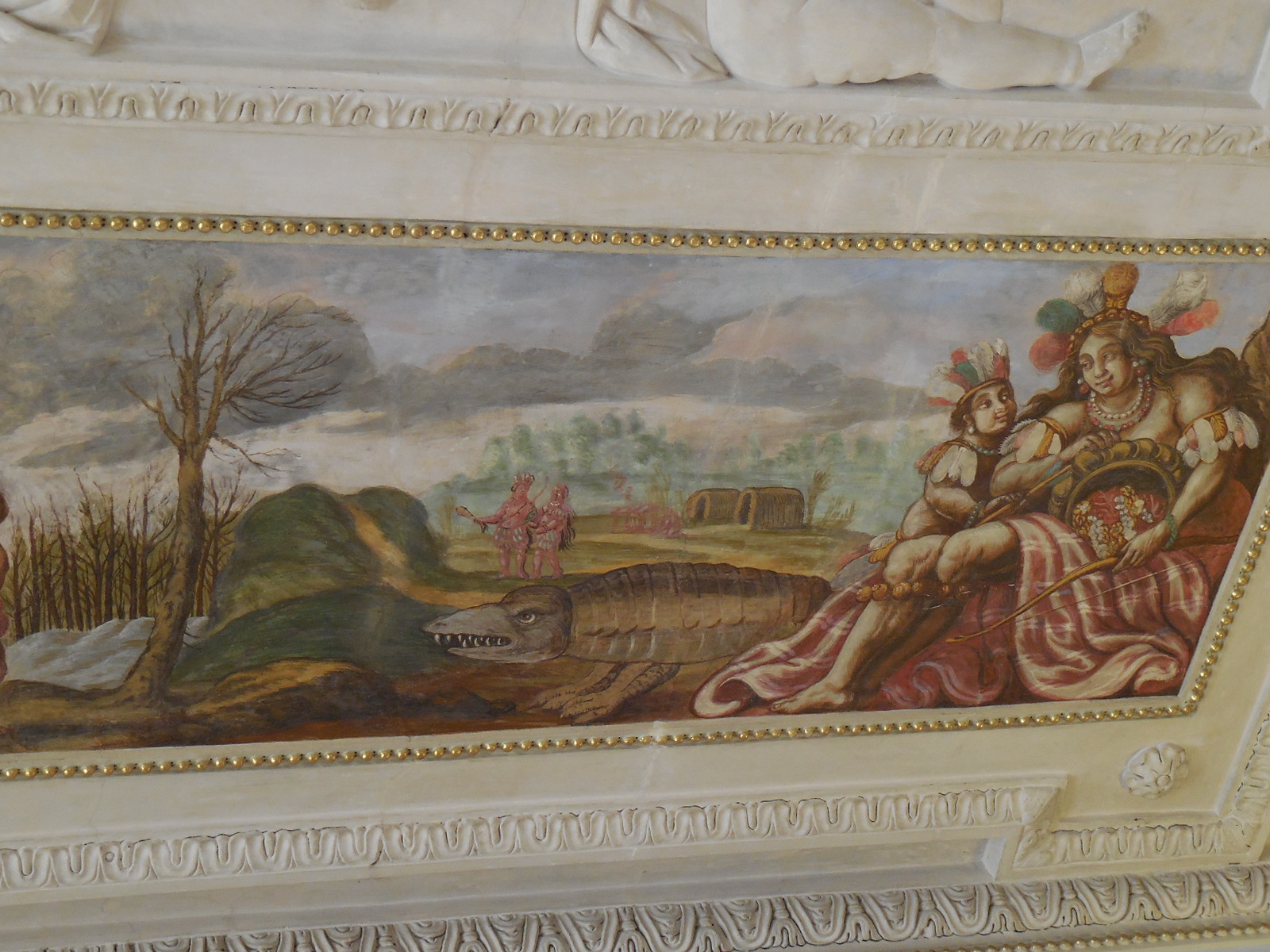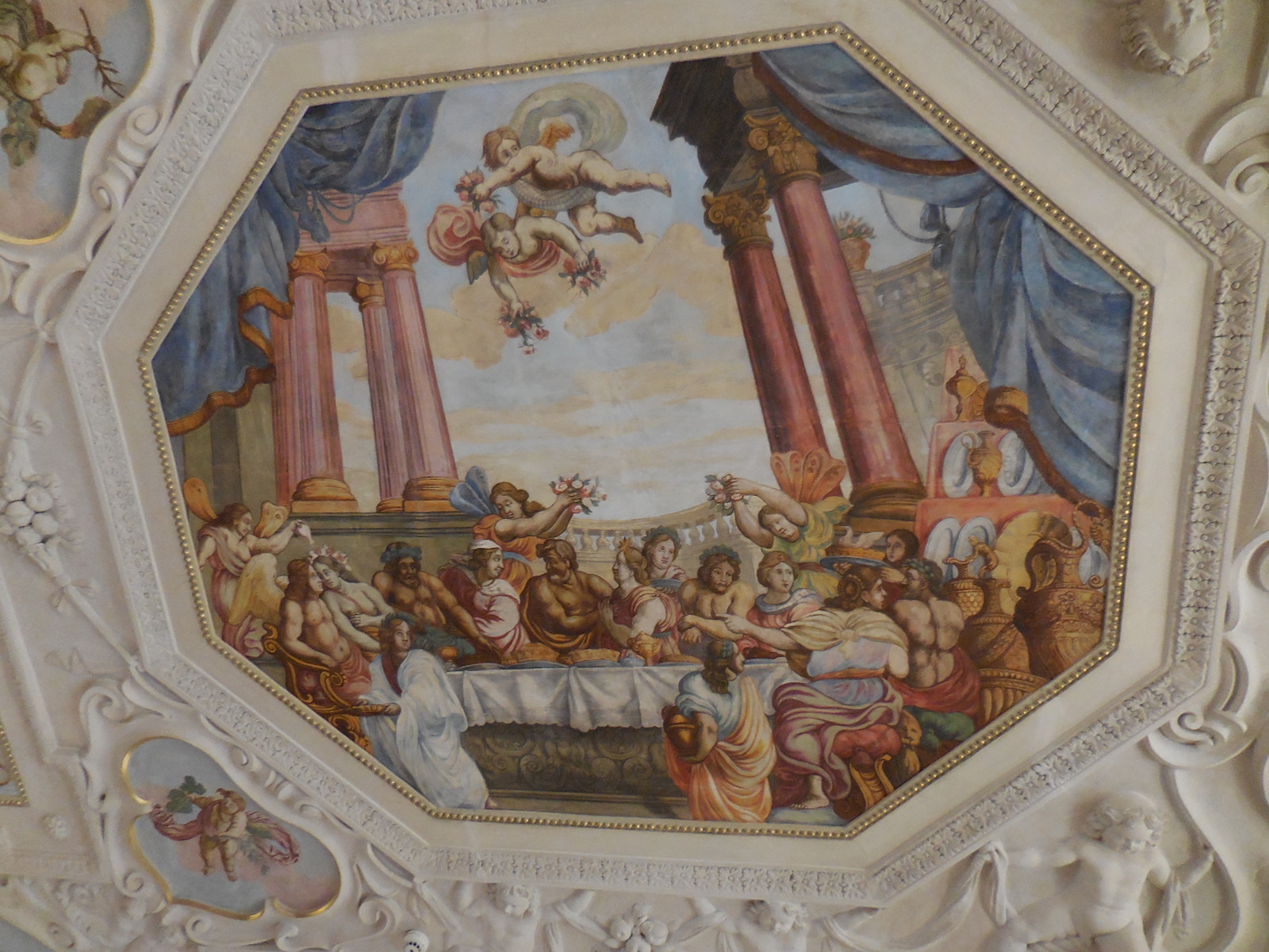 The Dining Room flaunted portraits and ceiling frescoes that enthralled me. I saw the Allegory of Europe, the Allegory of Asia and the Allegory of America, for instance. Poseidon and Bacchus appeared in several frescoes. I loved ceiling frescoes in chateaus, especially ones with mythological figures. The elderly attendant in the room described the various frescoes to me enthusiastically. It was nice to meet a museum attendant proud of the place where she was working.