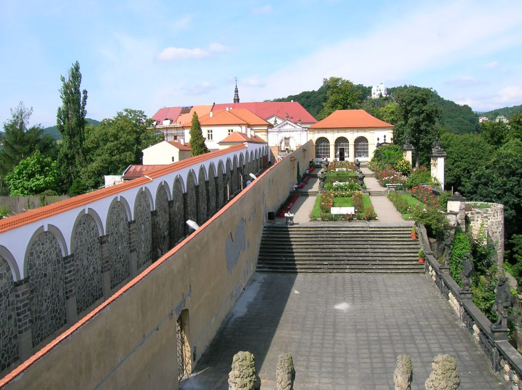 The moment I saw a picture of this majestic and riveting chateau dramatically perched on a cliff, I knew I had to go see it with my own eyes. A snapshot of Děčín Chateau adorned the cover of a guide to Czechoslovakia, a publication I had picked up at the many Prague bookstores I regularly visited. On a whim, during Easter Sunday of 1992, I took the train to Děčín. It was cold and raining. The chateau was closed as it was still under reconstruction, being transformed into a tourist spot from soldiers’ barracks. However, I was able to walk through the rose garden that dreary day, and I was determined to come back.