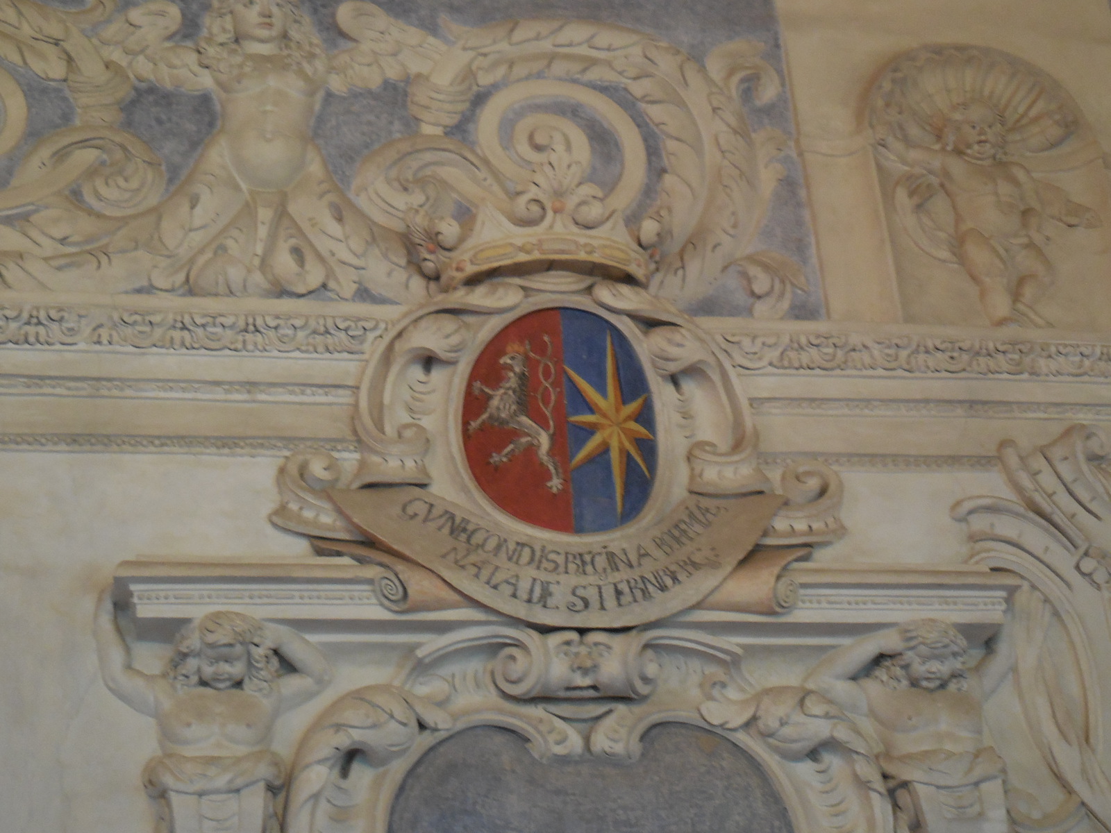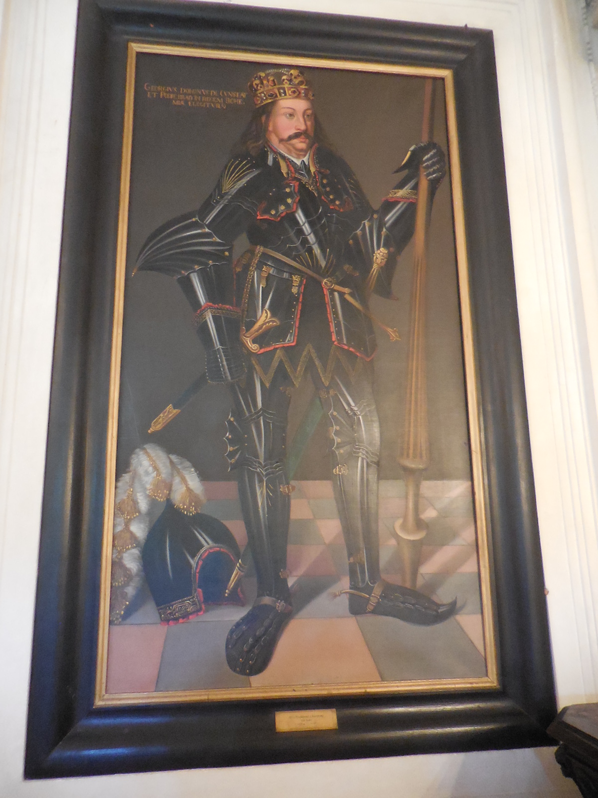In the Knights’ Hall, the vast first room, a portrait of Czech King George of Poděbrady, who had been related to the Sternbergs, hung prominently. A coat-of-arms representing the marriage of George of Poděbrady to Kunhata of Sternberg featured prominently in the space along with many other intriguing coat-of-arms. Indeed, George of Poděbrady influenced the history of the castle. During the 15th century Hussite wars, Catholics including castle owner Petr Sternberg fought against Hussite Czech King George of Poděbrady, who promoted the Utraquist religion. In 1465 Zdeněk Konopistský Sternberg even fought against George of Poděbrady, who was victorious and even destroyed the castle. George of Poděbrady would be the only ruler to conquer Český Šternberk.