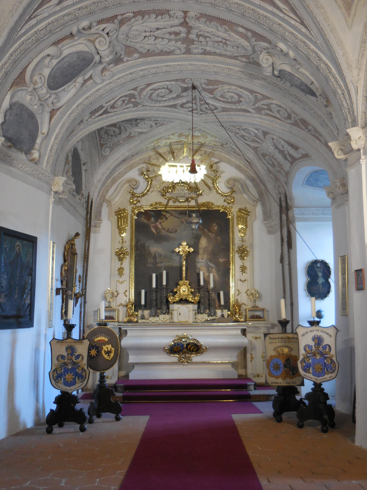 The main altar in the chapel was home to the painting called The Passion of Saint Sebastian as the religious space is dedicated to that saint. What I liked best about the library was a painting that was said to be Apostle Peter, though he is depicted without attributes. The surprised expression on the face of the figure with the thick beard intrigued me. It was probably created by my favorite Baroque painter, Petr Brandl. I recalled his paintings in the cathedral of Sedlec near Kutná Hora. I had been enamored by so many of his works throughout the decades.