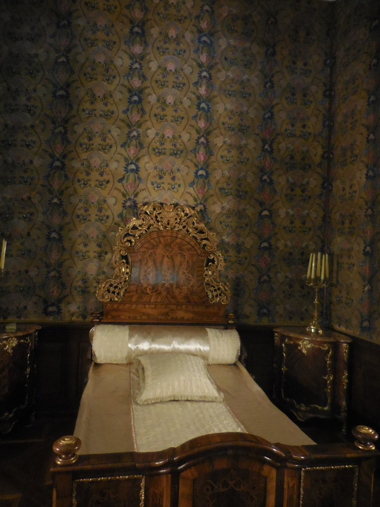 Rudolf Chotek, who had inherited the chateau from his father Václav Antonín, had worked for Empress Maria Theresa who spent a night in this chateau. This was a rare event because she usually stayed at Prague Castle or in a building the Habsburgs owned when she traveled. Her elegant bedroom was on display. Portraits throughout the chateau paid homage to the long-time ruler. Maria Theresa had come to Veltrusy for the trade fair, the first of its kind in the world. This large event took up space from the parking lot through the chateau grounds and promoted Czech manufactured goods. The empress was so impressed that she awarded Rudolf the Order of the Golden Fleece.
