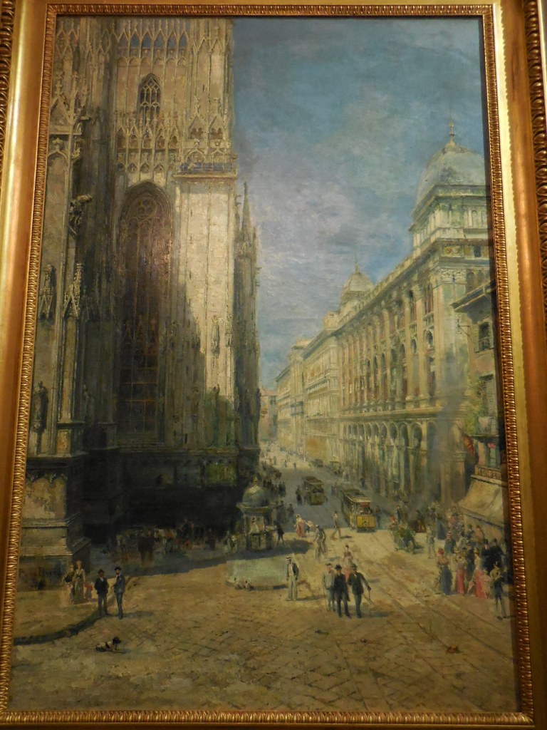 These three palaces, located on the Piazza della Scala near the Scala Theatre, displayed extraordinary artworks of the 19th and 20th century. In the 19th century sections, I was amazed at the vedutas of Milan Cathedral, the system of canals in Milan called Navigli and the Alpine scenes. I found myself thinking of vedutas I had seen in the Czech Republic, such as the masterful ones at Mělník Chateau near Prague.