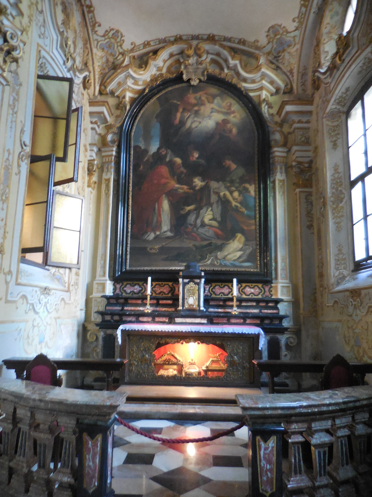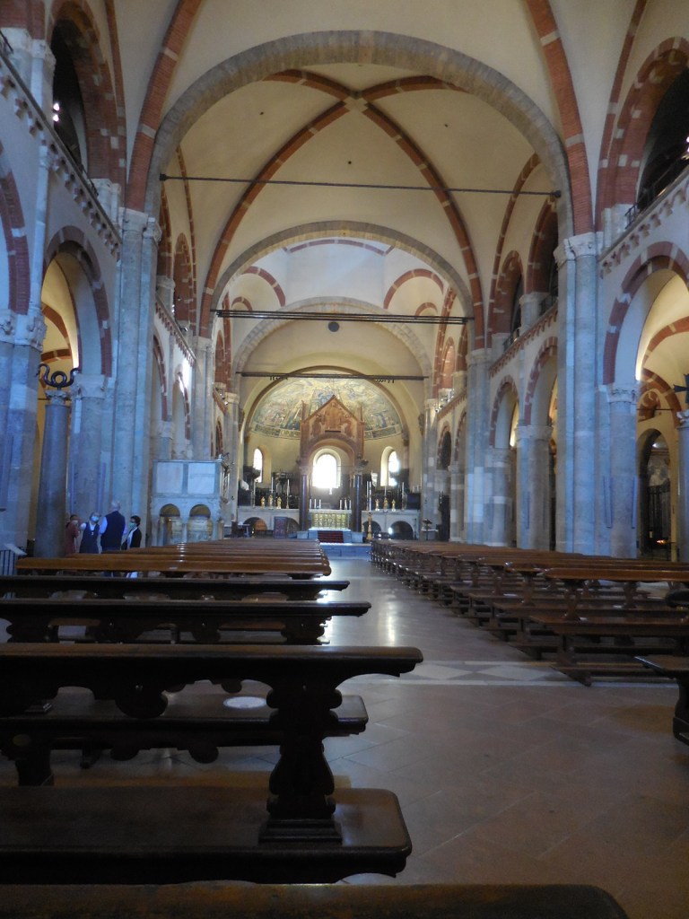 Also, I gazed at the 10th century ciborium which was painted with reliefs showing Christ, Saint Ambrose, Saint Benedict and Saint Scholastica. It included four columns in red porphyry and a canopy. The Golden Altar, another highlight for me, dated from the 9th century. The front showed off masterful goldsmithing skills and was adorned with precious stones. Scenes from the life of Christ decorated this side as well. The back included a silver relief celebrating the life of Saint Ambrose. The bishop’s throne hailed from the 9th and 14th centuries. I imagined the kings of Italy seated on the throne during their coronation ceremonies. Wow!