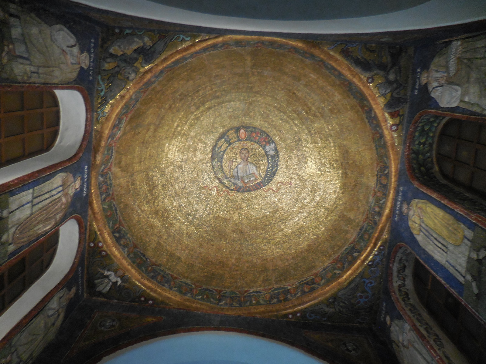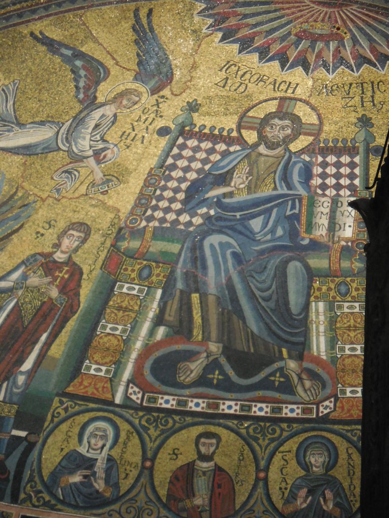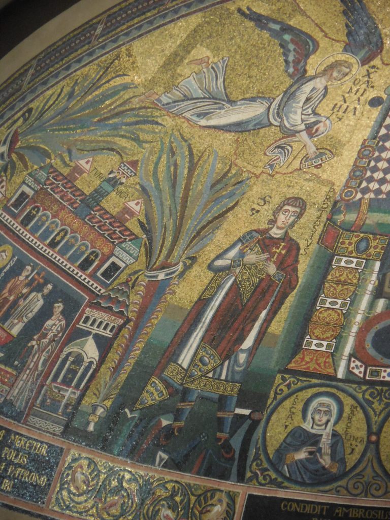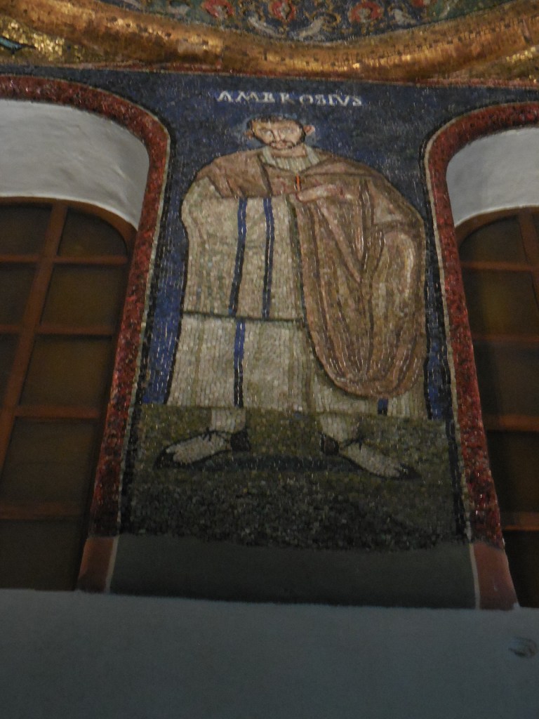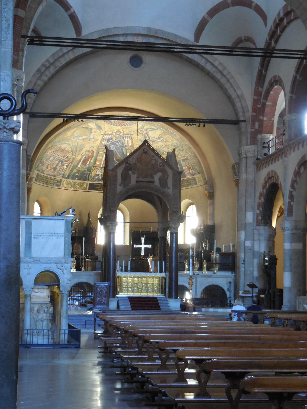 I stared at the apse with its 13th century mosaic of Christ Pantocrator or creator of all. At the sides were scenes featuring the life of Saint Ambrose. A gilded domed ceiling caught my attention as did mosaics on walls dating from the 5th century.