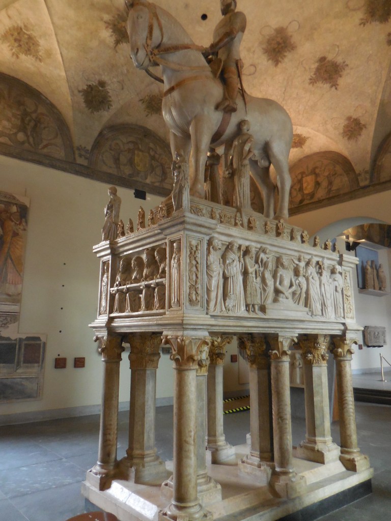 The collection of the Museum of Ancient Art and Arms features sculpture from the fifth to the 16th century, some from Lombardy and others from Tuscany. Some rooms are decorated with stunning frescoes. An armory containing European weapons from the end of the 14th to the 19th century and an impressive room of tapestries also make up the exhibition. Sixteenth century Flemish tapestries intrigued me. Saint Ambrose dominates another tapestry. Two medieval portals and tombstones are also on display.