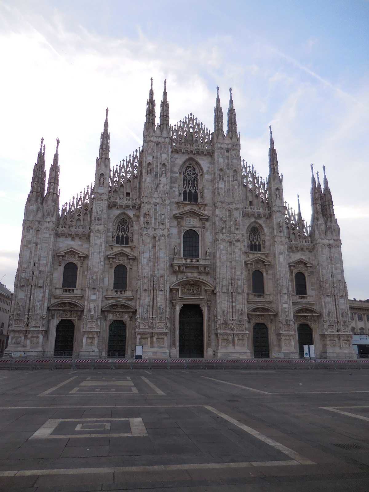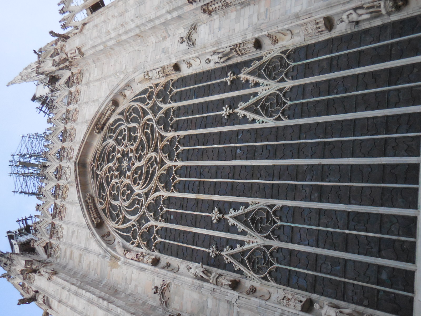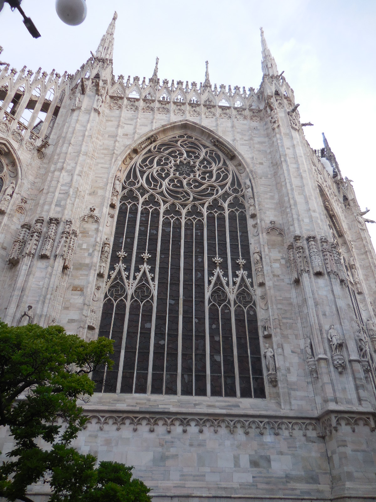 When I arrived at the Duomo in Milan with my camera, it was about six am. I hadn’t been able to sleep because I was so anxious about my exciting itinerary for my first full day in the city. The large square was almost empty, though an occasional jogger passed through. I spent at least an hour walking around the cathedral, gazing at the exterior decoration – the spires, the large windows, the flying buttresses, the rich sculptural adornment, the gargoyles and more.