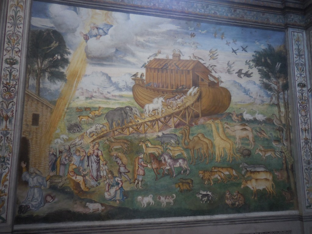 I especially liked the Chapel of the Flood by the Luini brothers. I gazed at the beasts making their way onto Noah’s Ark. A rainbow flitters across the sky. Yet the landscape is decrepit, in ruins.