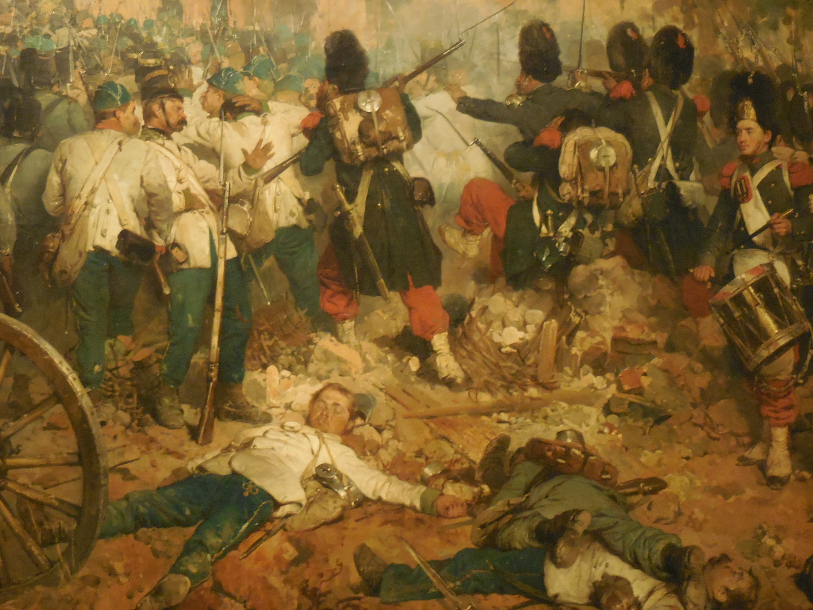 I saw paintings depicting Italian King Victor Emmanuel II, who took the throne in 1861 and reigned until his death in 1878. Two of the paintings were created by Gerolamo Induno. Nicknamed the Father of the Fatherland, Victor Emmanuel II had the distinction of being the first king of a unified Italy since the sixth century. He was born the eldest son of Habsburg Empress Maria Theresa of Austria and made a name for himself in the First Italian War of Independence during 1848-49 before being crowned king.