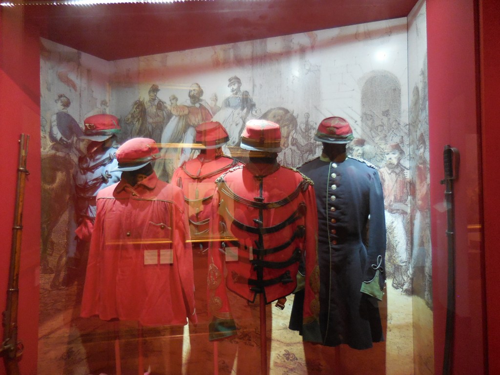 Giuseppe Garibaldi, one of the most prominent generals in modern history, guided the volunteers in the Expedition of the Thousand. Their uniforms were made up of red shirts and grey pants. In the exposition I saw the actual poncho and red shirt donned by Garibaldi, who also had military successes in South Africa and elsewhere in Europe.