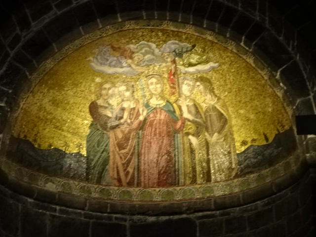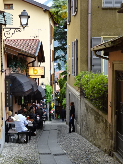 Bellagio was next on the itinerary. I ate a delicious lunch in an costly restaurant in this charming town with steep cobblestoned lanes dotted with some expensive shops. The historic center was made up of only three streets but also sported a park and marina. I walked up one steep street that had a medieval aura and found myself on the main square looking at the Basilica of San Giacomo and a tower. The basilica hailed from the Romanesque days of the 11th and 12th centuries and featured a Romanesque cross and Gothic triptych.