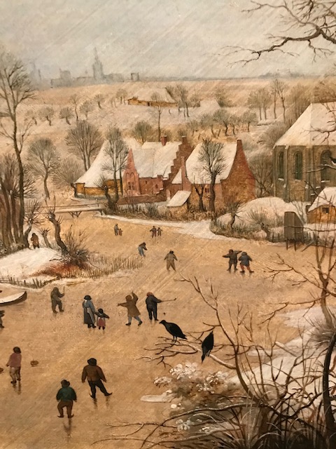 One of my favorite exhibitions of the year, taking place in Kinský Palace, was called “Get on the ice!”, featuring hockey and skating in paintings and other artistic creations. It reinforced the fact that ice hockey and skating have played significant roles in Czech and Slovak identity. I especially was impressed by the works of the Dutch masters who had inspired Czech painting. Pieter Brueghel II’s scene of skating on a pond caught my undivided attention. Czechs first represented skating on the Vltava River and on ice rinks.