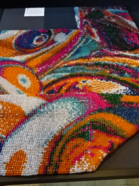 Other sections concentrated on magazine and book design. I saw beautiful children’s volumes illustrated by Lada, Josef Čapek and Jiří Trnka. I was drawn to the covers and typography of Karel Teige, an avantgarde interwar artist. The exhibition showcased contemporary times by displaying a colorful, large Quantum Beaded Sweater created in 2020 and 2021 by Cindy Kutíková, for instance.