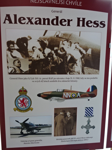 On the first floor there were panels about General Alexander Hess, a pilot I had not heard of before. He also had starred in a 1926 silent Czechoslovak film as well as working as a pilot. Hess was the organizer of the Czechoslovak aircraft for the 1936 Olympics. After the Nazi Occupation in 1939, he helped pilots escape, equipping them with false passports, and General Hess wound up fleeing from the Nazi Protectorate to France and then to the USA in January of 1940. After World War II, he returned to Czechoslovakia but fled again, this time from the Communist regime. General Hess settled in New York City, where he worked as a technical assistant with PAN AM.