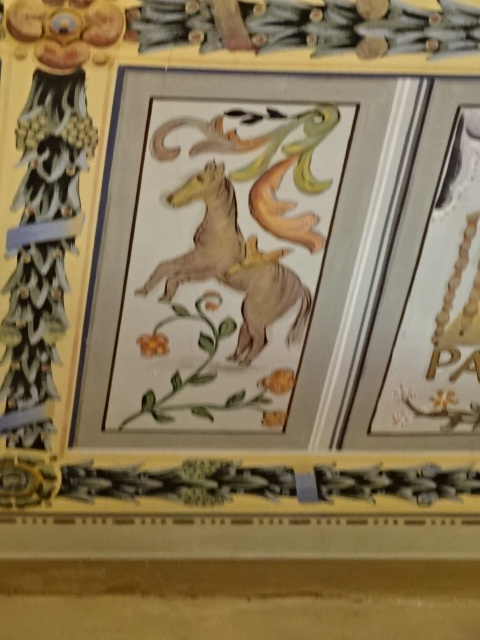 While most of the furnishings are not original due to the Nazi occupation of the chateau and the dereliction that occurred during socialist times, it does boast original 19th century flooring in the main hall. To be sure, the Communists destroyed most of the chateau interior. Yet, decades later, Radim would be resurrected by painstaking efforts that made it into the gem it is today. The painted ceilings in the bedroom, main hall and gallery have been preserved to a great extent. The painted decoration on several ceilings, such as a lobster and a horse, hails from 1607 to 1610.
