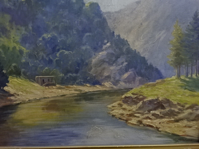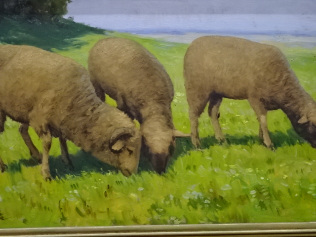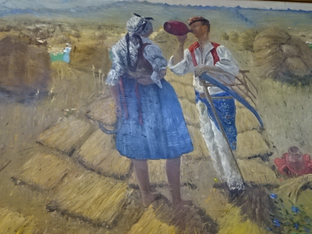 However, the biggest highlight for this art lover was the gallery on the third floor. Nineteenth and early 20th century landscapes dotted the hallway. I saw images of the slowly flowing Berounka River, the snow-covered Alps, charming cottages tucked into woodlands, the tranquil landscape in the Pilsen region, sights of Prague, portrayals of sheep, folk dancing figures and haymakers doing laborious work in the fields, mystical forests and other scenes. I was enamored by each painting as landscapes from this time period were my favorite. While most of the paintings were authored by lesser known artists who deserved much praise, one work was painted by the well-known Otakar Nejedlý.