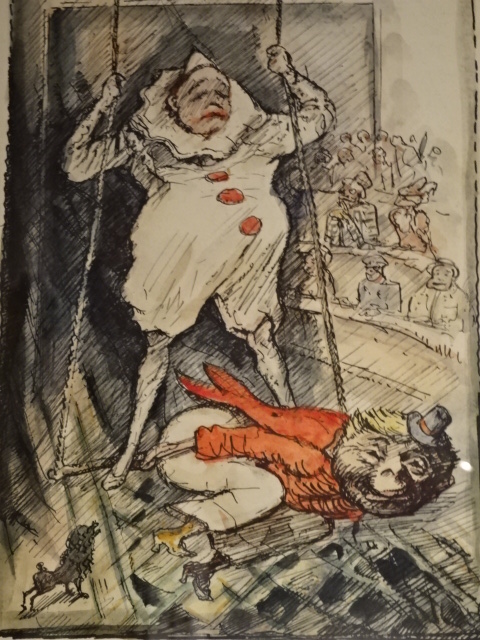 One of Kafka’s small black-and-white drawings as a young child was on display, and art promoting his various books also had a prominent place in the exhibition. Artistic renditions of The Metamorphosis were represented, for instance. German art and literature at this time also played prominent roles in society. An antisemitic attitude was seeping into some of the publications. The exhibition did not only concentrate on works in Prague but also art that had immersed itself into European society as well, providing a European context for these powerful renditions.