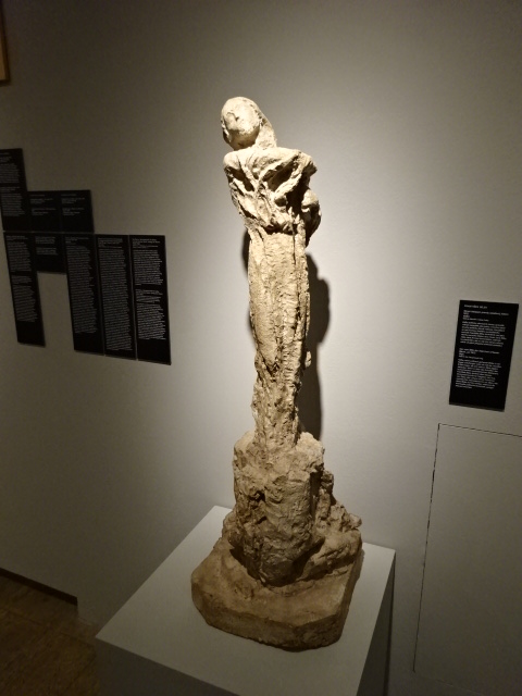 Sculpture that permeated the exhibition included that of Art Nouveau symbolist František Bílek, whose Secession homes in Prague and Chýnov I had visited. Miniature versions of several of his sculptures were on display. He utilized mostly religious themes with a sense of mysticism. While Bílek was best known as a sculptor, he also designed furniture and created graphic art, drawings and illustrations. An architect as well, he designed cemeteries and made gravestones, for instance. His woodcarving skills were astounding, too. A year later, in 2025, I would see Bílek’s amazing works in the former flat of Czech poet Otakar Březina, incorporated into a museum for the symbolist poet in Jaroměřice of the Vysočany region. To be sure, Bílek’s creations caught the attention of society during the Art Nouveau age.