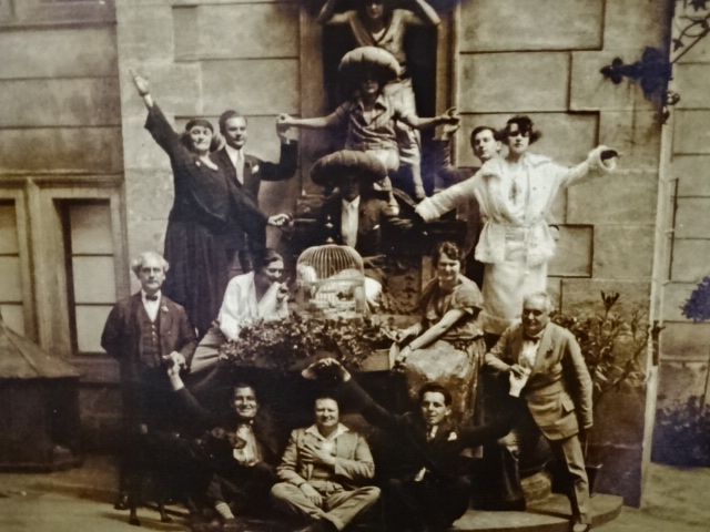 Photo of acting ensemble that shot a film at the chateau many decades ago