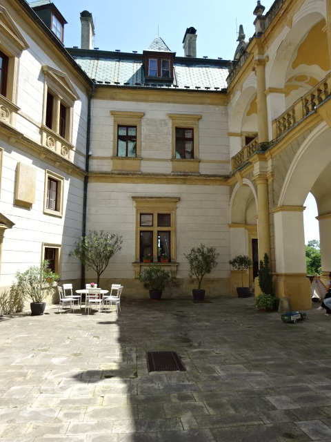 The guide explained that a Gothic castle had been built on the site in the 15th century, replacing a fortress. Indeed, a Gothic tower still was a dominant feature of the chateau. It was even possible to climb it and take in the views. At the end of the 16th century, the castle got a Renaissance makeover and became a chateau for residential living. During the 18th century, more reconstruction was carried out – this time the chateau turned into a Baroque gem. The garden was also created during this period. The following century Stránov was made into the Neo-Renaissance structure that it is today.