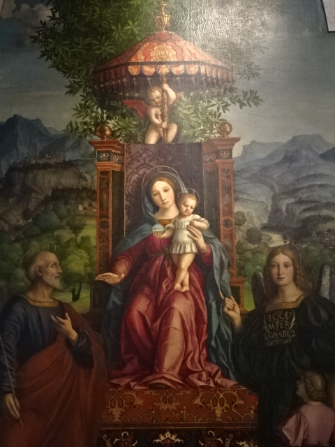 I favored the medieval paintings, but each space had something extraordinary to offer. The Golden Room with its 15th century collection enamored me as did the elaborate, superb furnishings of the Dante Room. The Black Room had six masterfully crafted mahogany and walnut doors. The Lombard Room dazzled with north Italian Renaissance paintings.