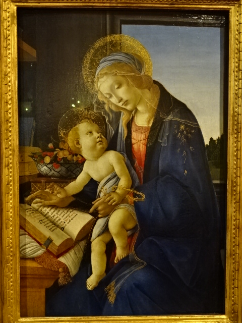 Numerous artworks enthralled me, but I would like to concentrate on several of the many that were remarkable. Some paintings that caught my undivided attention included Sandra Botticelli’s The Virgin and Child (the Madonna of the Book), dating from 1482-83. Showing the Virgin and Child reading, the painting reminded me of how important reading and literature have been in my life. The scene had a mystical appearance due to the superb lighting. I could understand how the act of reading has a sort of mystical power. The painting also exuded elegance.
