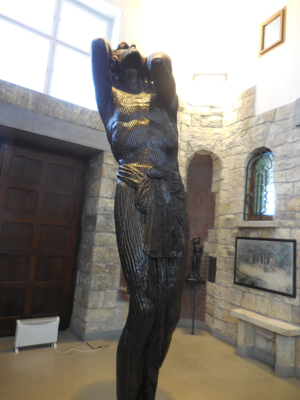 A rebel artist, Černý never fails to spark controversy with his shocking and provocative creations set in public areas. He has painted a Soviet tank pink and designed male figures that urinate into an enclosure shaped like the Czech Republic, for instance. His 1997 creation “Hanging Man” consists of a 220-centimeter Sigmund Freud hanging by one hand onto a roof of a building on Prague’s Husova Street. In the main passage of Prague’s Lucerna Palace, his 1999 “Horse” shows Saint Wenceslas on an upside-down horse. Located in a courtyard in front of Prague’s Quadrio shopping center near Národní třída, his monumental installation of the head of Franz Kafka, also referred to as The Metamorphosis, consists of 42 moving layers that rotate 360 degrees and occasionally align to resemble Franz Kafka’s head. Weighing 39 tons, the Metamorphosis measures 11 meters or 36 feet in height.