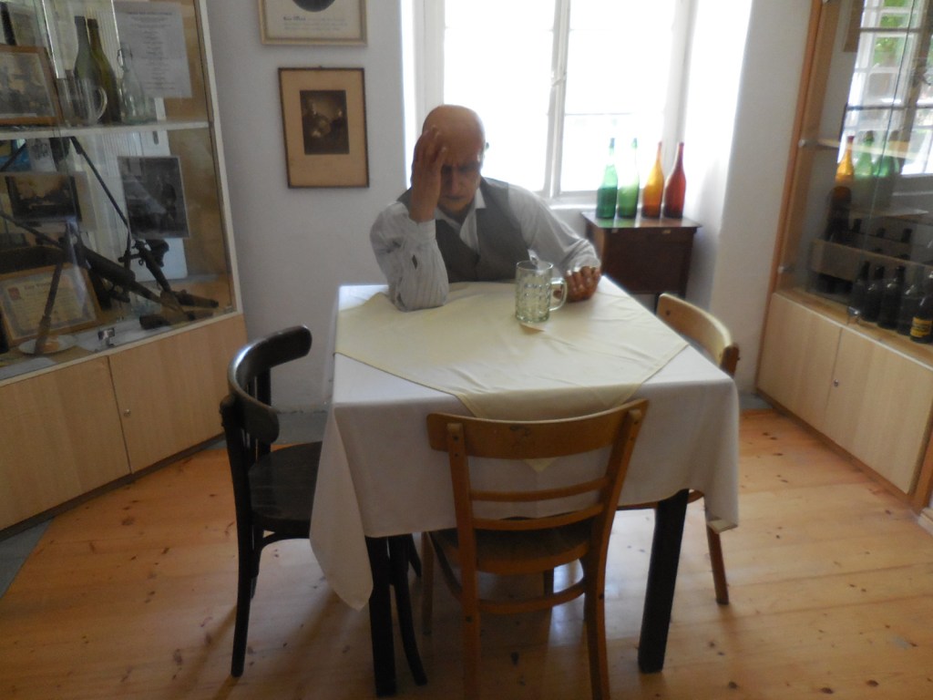 We went inside. First, we visited a museum dedicated, in part, to Chudenice native Jaroslav Kvapil, who had been a poet, playwright, translator, dramaturg and director. The museum also showcased other Chudenice natives and village life. Kvapil worked with the National Theatre and Vinohrady Theatre for many years. In 1901 he wrote the libretto for Antonín Dvořák’s opera Rusalka. He was involved in the resistance during World War I as he supported the creation of an independent Czechoslovakia. During World War II, he founded an organization of resisters. Then the Nazis learned of the existence of his group. Kvapil was imprisoned for 11 months. When the Communists were taking control in 1948, he signed a petition, attempting to save democracy in Czechoslovakia. He died in 1950 and is buried in Chudenice.