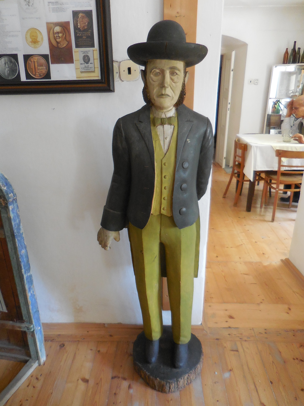 We went inside. First, we visited a museum dedicated, in part, to Chudenice native Jaroslav Kvapil, who had been a poet, playwright, translator, dramaturg and director. The museum also showcased other Chudenice natives and village life. Kvapil worked with the National Theatre and Vinohrady Theatre for many years. In 1901 he wrote the libretto for Antonín Dvořák’s opera Rusalka. He was involved in the resistance during World War I as he supported the creation of an independent Czechoslovakia. During World War II, he founded an organization of resisters. Then the Nazis learned of the existence of his group. Kvapil was imprisoned for 11 months. When the Communists were taking control in 1948, he signed a petition, attempting to save democracy in Czechoslovakia. He died in 1950 and is buried in Chudenice.